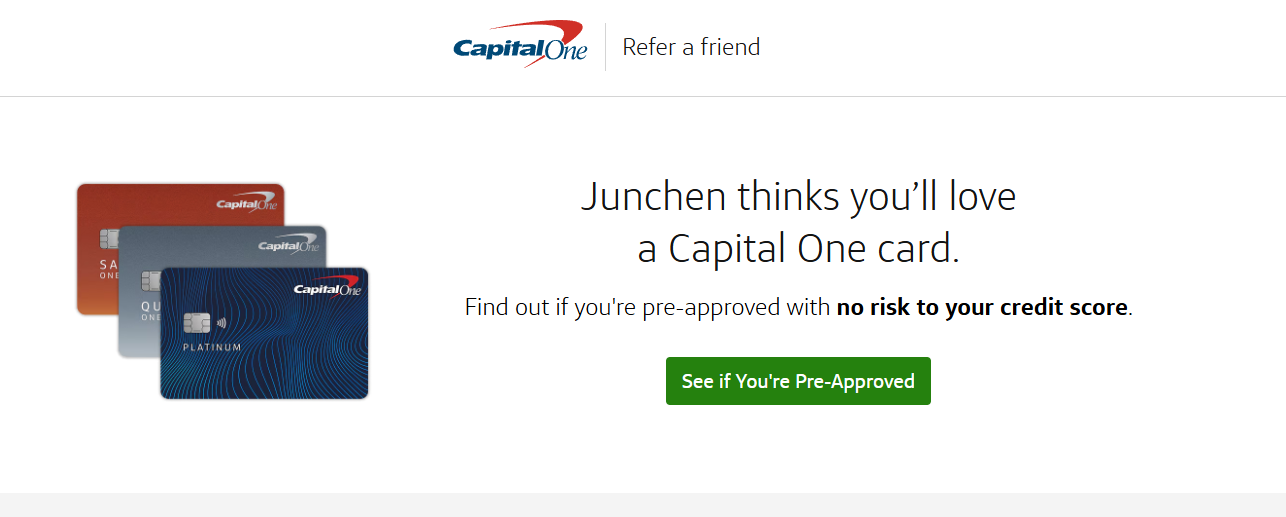 使用我的邀请链接 邀请链接 https://i.capitalone.com/JgN5yvbGu 来进行注册,会提高成功概率,注册成功后可以私信我返现。