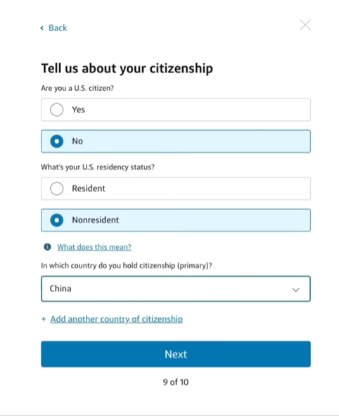 这里不管你有没有美国的银行账户你都选有
