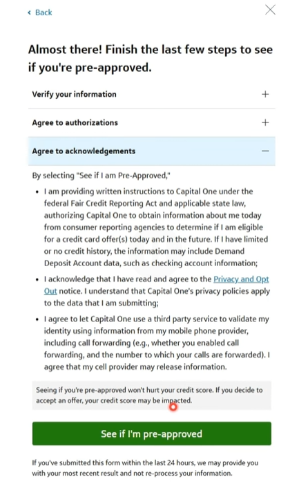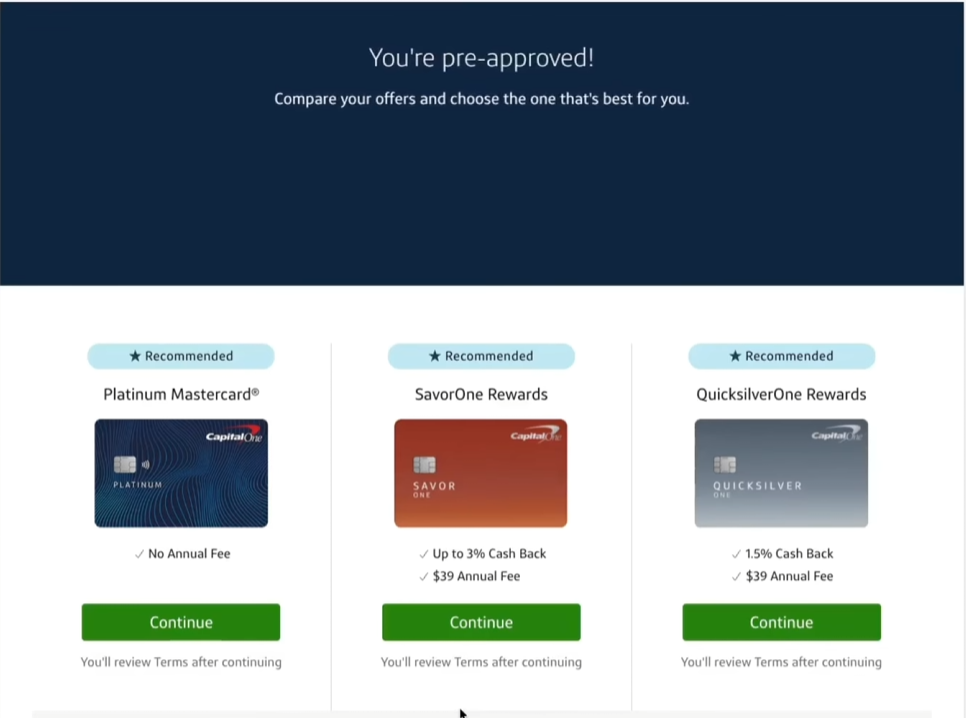 相比其他银行,Capital One 对“空白信用”(无信用记录)的容忍度较高,常见可以通过预审批(Pre-Approval)提前判断是否有机会下卡,降低硬查询风险。